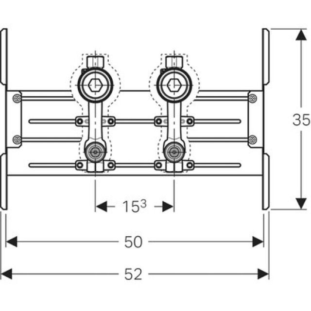 Duofix Traverse avec deux unités pour compteur d'eau avec robinet d'arrêt encastré JRG LegioStop