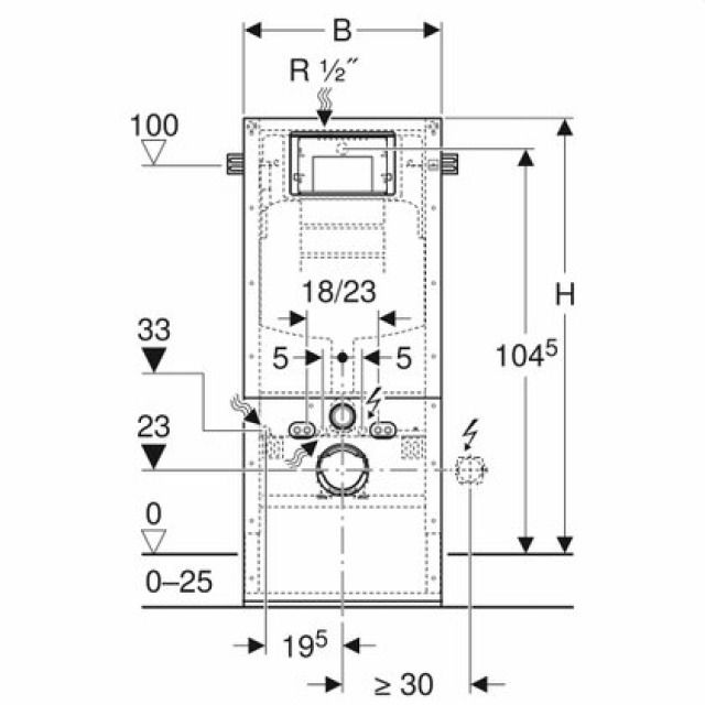 • Equipé d'une gaine vide destinée à la conduite d'amenée pour raccordement des WCdouches Geberit AquaClean